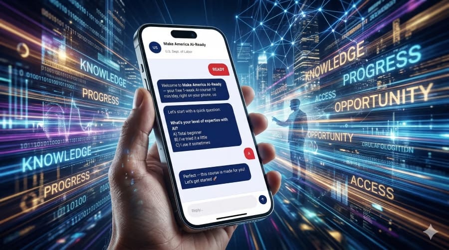 El Departamento de Trabajo de EE.UU. ha lanzado Make America AI-Ready, un curso gratuito de alfabetización en IA que se imparte íntegramente por mensaje de texto.